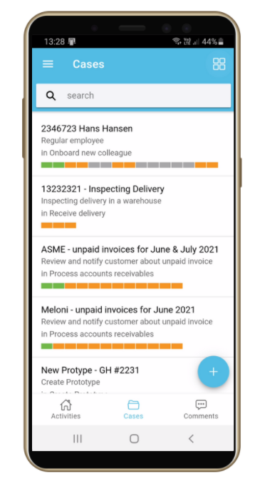 Se kun relevante aktiviteter, instruktioner, opgaver, og udfyld formularer direkte på mobilen. Læs Grundlæggende om mobilapp for mere information.