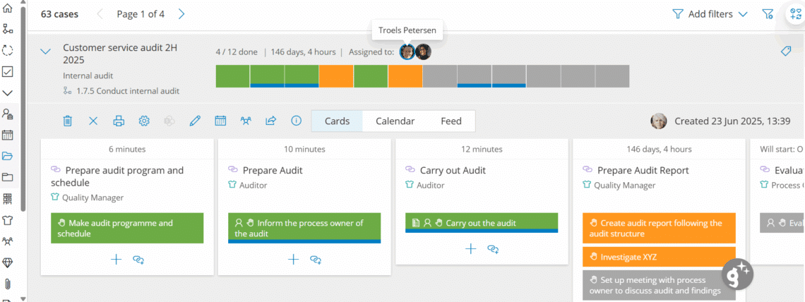 Opgaver vises for brugere med den rette rolle på det rette tidspunkt. Sagsbaserede opgaver kan også tildeles specifikke brugere.