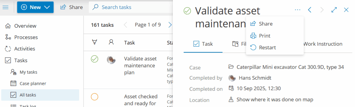 Når den er fuldført, vil et klik på opgaven vise dig detaljerne om, hvem der afsluttede opgaven og hvornår.