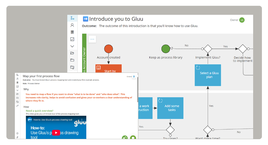 Den intuitive end-to-end BPM-platform til at engagere dine kolleger i procesarbejde. Gluu hjælper procesledere med at forbinde mennesker, værktøjer og processer, så de sammen kan skabe løbende forbedringer. Hold op med at dokumentere processer, som folk ignorerer – begynd at opbygge reelle, samarbejdende måder at arbejde på.