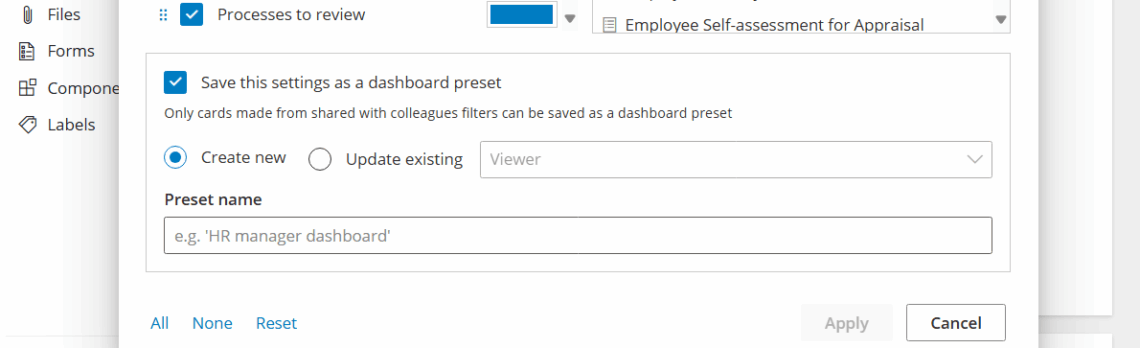 - Fügen Sie Karten aus Gespeicherte Filter hinzu.