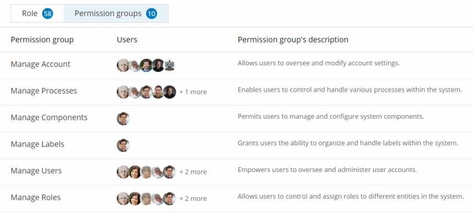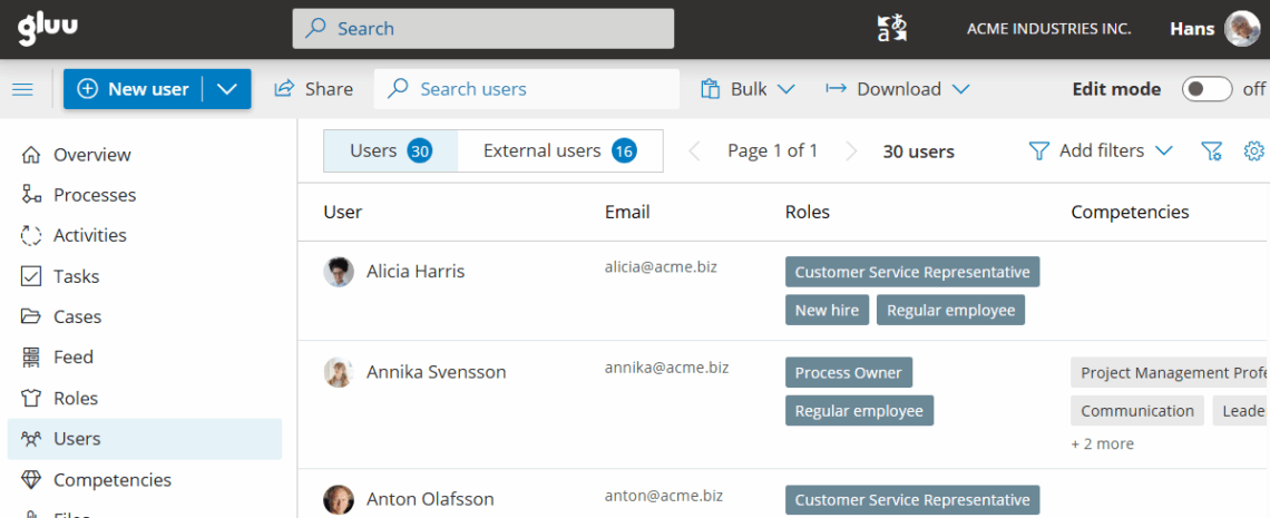 „Rollen“ verbinden Benutzer mit Prozessen und stellen sicher, dass jeder Benutzer das sieht, was für die Arbeit der Person relevant ist.