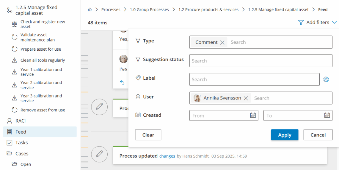 Beispiel: Ein Techniker, der „Maschine schmieren“ ausführt, fügt eine schnellere Methode als Kommentar hinzu. Andere Techniker reagieren, und der Prozessverantwortliche überprüft später Verbesserungsvorschläge.