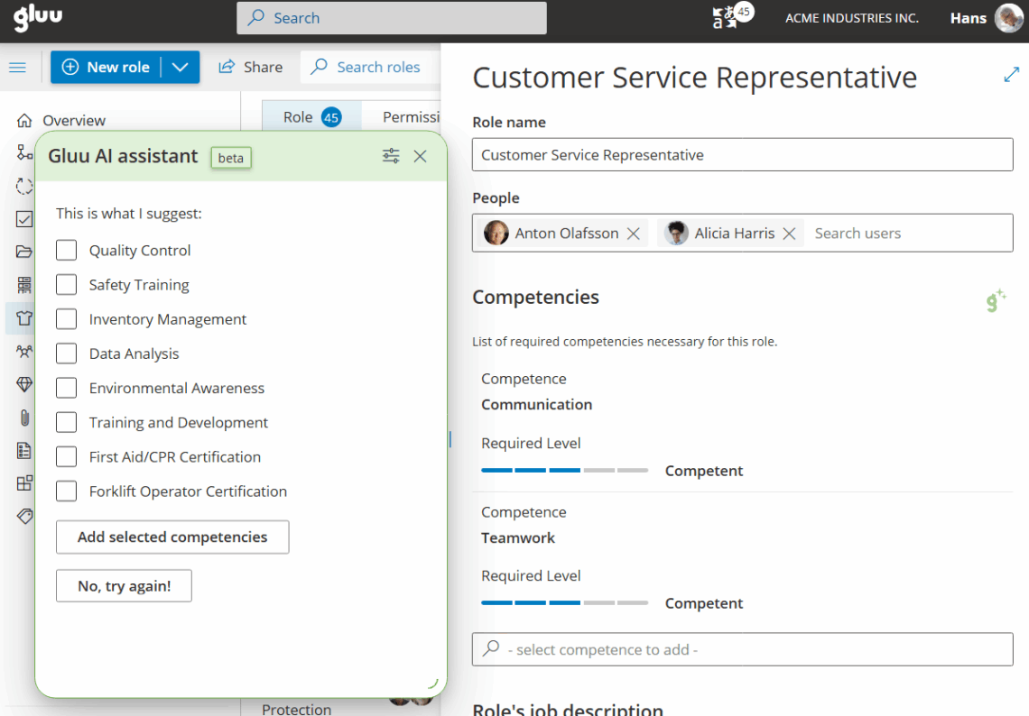 - Erstellen oder bereichern Sie Rollen (Zweck, Verantwortlichkeiten, Kompetenzen).