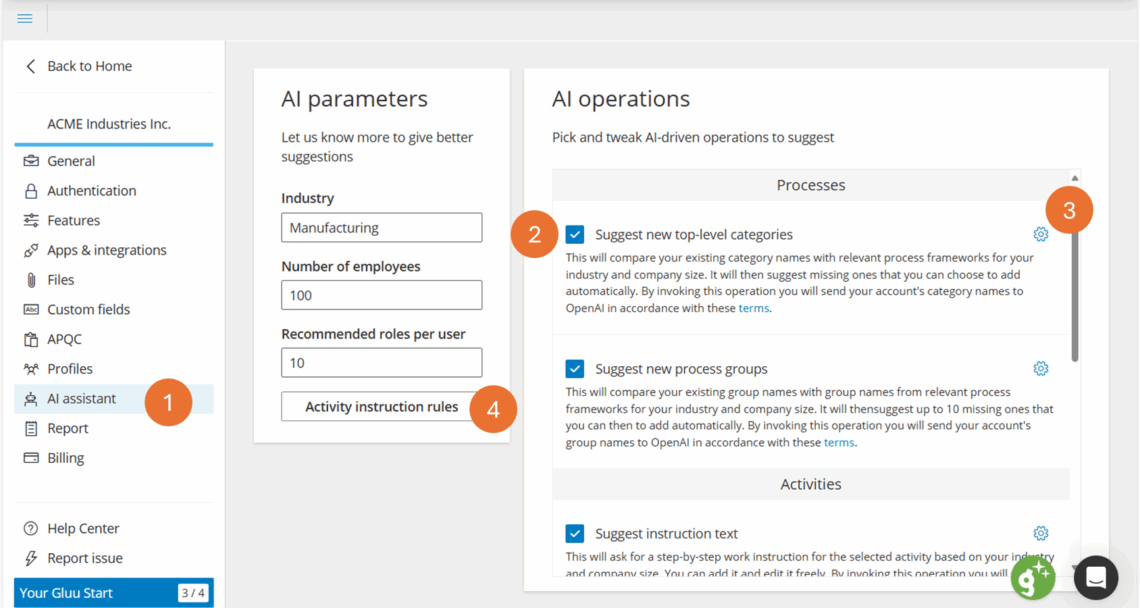 Der Gluu Assistant verwendet das LLM von OpenAI unter Enterprise Privacy, was bedeutet, dass Ihre Daten nicht zum Trainieren von Modellen verwendet werden. Vermeiden Sie es, hochsensible personenbezogene Daten zu Anweisungen hinzuzufügen. Die Versionierung, Genehmigungen und das Eigentum Ihres Unternehmens gelten für alle KI-gestützten Inhalte.