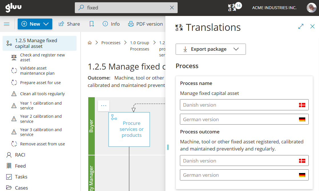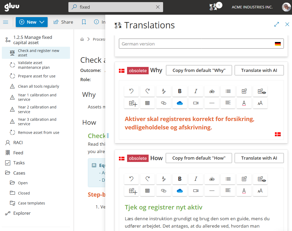 Ziel: Verwenden Sie das Localize-Add-on von Gluu, um Prozesse und Arbeitsanweisungen zu übersetzen, sodass lokale Benutzer Inhalte in ihrer Sprache sehen, während Sie einen einzigen Master behalten.