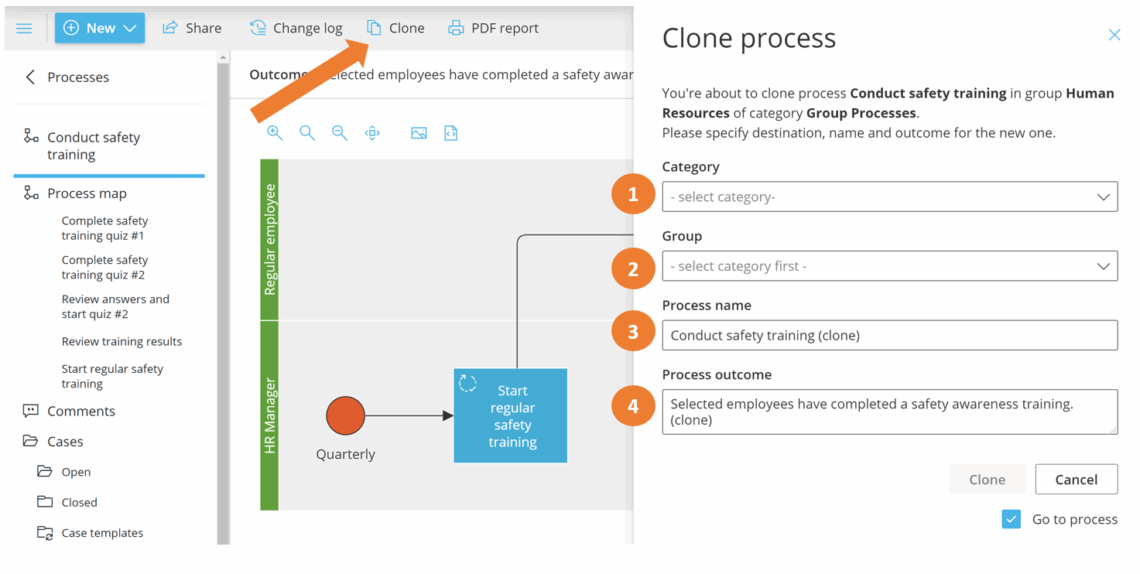 - Wählen Sie den Prozess aus, den Sie klonen möchten.