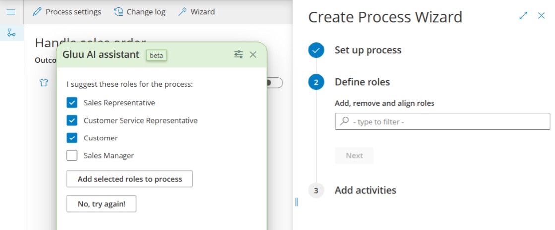 Wählen Sie die vom Assistenten vorgeschlagenen Aktivitäten für jede Rolle aus.