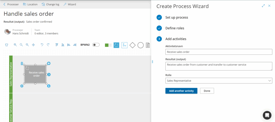 Wenn Sie den Assistenten abgeschlossen haben, öffnen Sie den Editor, um erweiterte Notationen mit BPMN 2.0-Elementen hinzuzufügen.