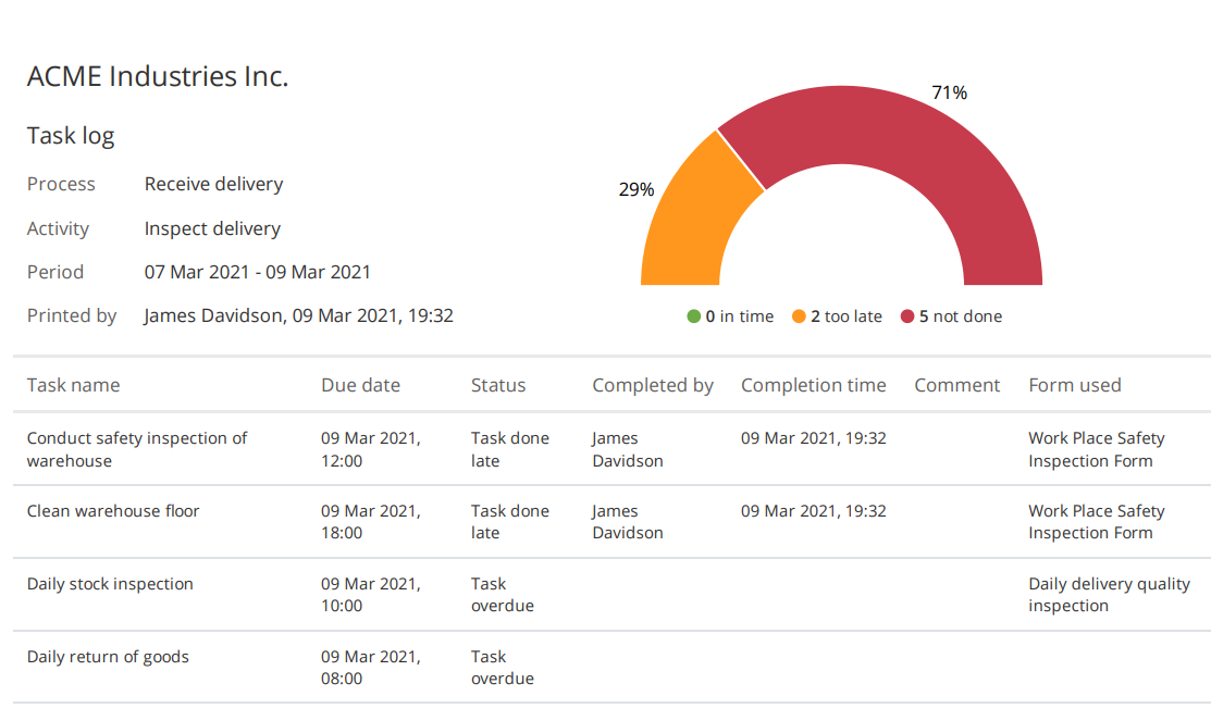 Alle Aufgaben werden erfasst – erledigt, verspätet oder nicht erledigt.