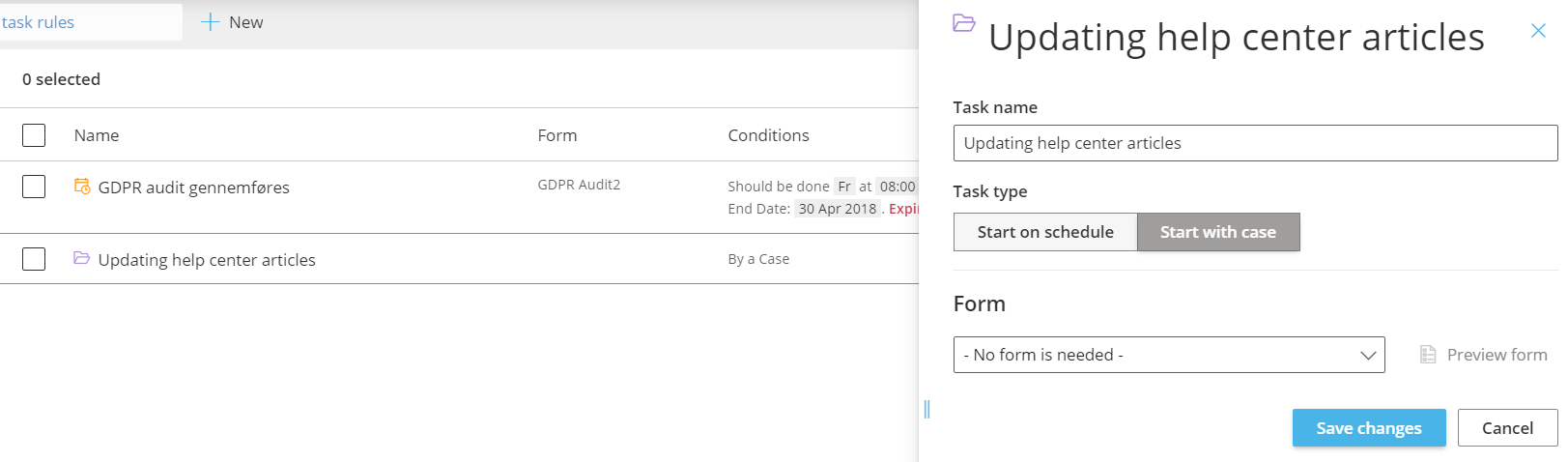 - Erstellen Sie die Aufgabe und wählen Sie Fallbasiert.