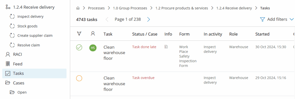 - Überprüfen Sie die Ergebnisse (erledigt, verspätet, nicht erledigt). Sie können Aufgaben bei Bedarf als abgeschlossen markieren.