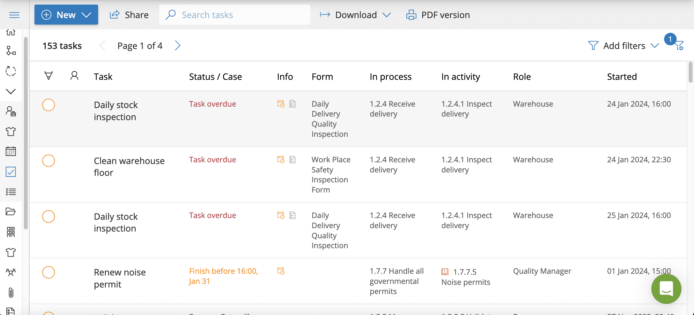 Tasks appear to users based on role or personal assignment. For advanced team/assignment control, see the dedicated article “Manage advanced cases”.