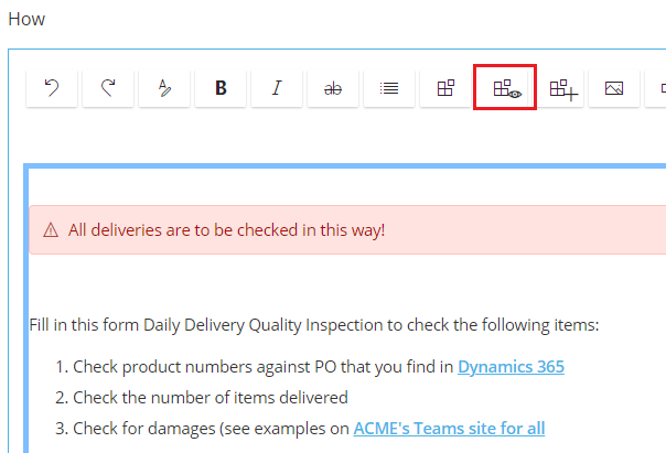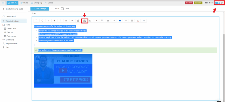 - Open the work instruction and turn on Edit mode.