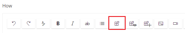 Inserted HTML components show as named boxes in edit mode. Click the component icon with the “eye” to toggle between box view and content view.